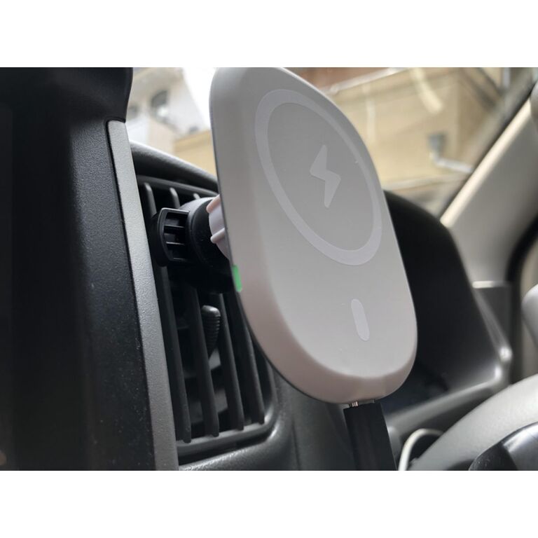 ワイヤレス充電機能としては、最大出力7.5W。MagSafe充電器の15W出力に比べると劣りますが、運転している間に充電できるし、ナビアプリを起動させながら給電するには十分な出力でしょう。