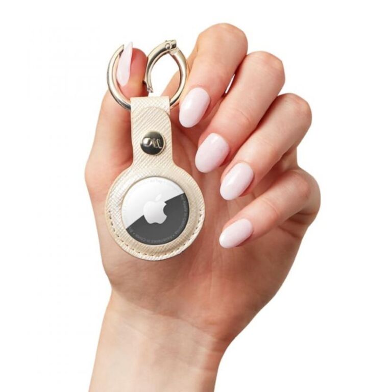 エアタグを持ち運ぶときはカバンや財布のポケットに入れるのもいいですが、コンパクトでおしゃれなデザインをしているので、別売りのキーリングやストラップを利用して見える場所に取り付けるのもいいでしょう。