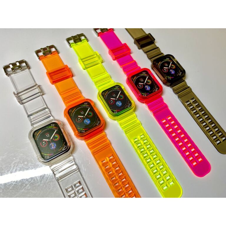 カラーバリエーションは、41mm/45mmともにクリア・オレンジ・イエロー・ピンク・ブラックの4種類がラインナップされています。