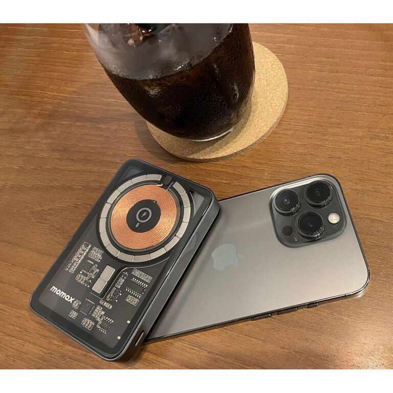 バッテリー内部が透けて見えるスケルトンデザインの「momax Q.Mag Power スケルトンワイヤレスバッテリー」を見つけた。