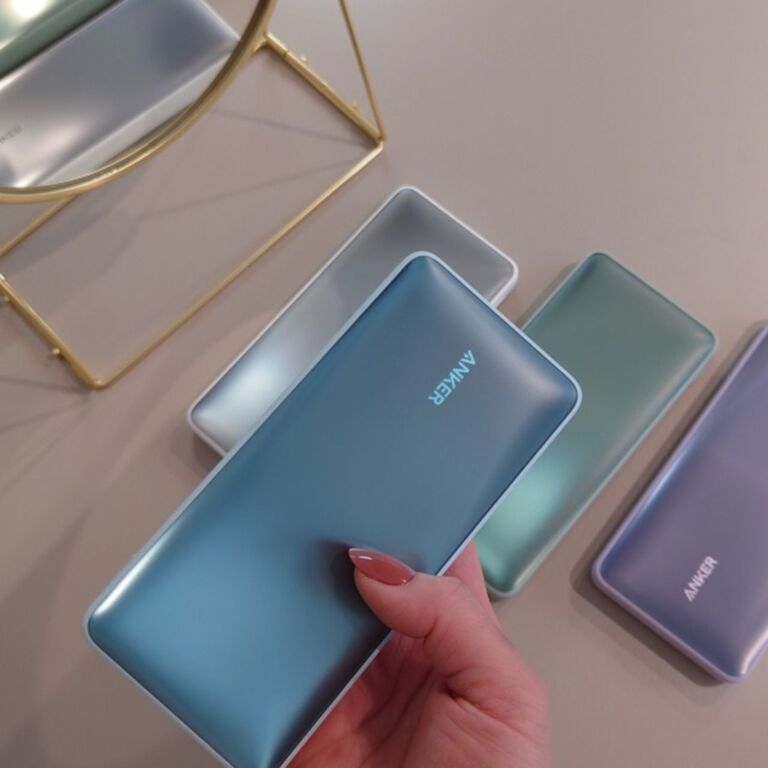 「Anker Power Bank (10000mAh,25W,3 Port)」は定番のブラック、ホワイトカラーのほかにグリーン、ブルー、パープルカラーが揃っています。手持ちのスマホに合わせても統一感があっていいですよね。