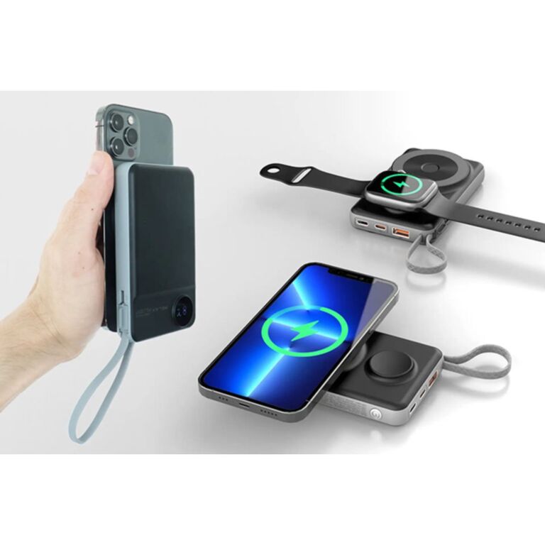 本アイテムはiPhone、Apple Watch、Air Podsの3台を同時に充電できるMagsafe対応モバイルバッテリーです。