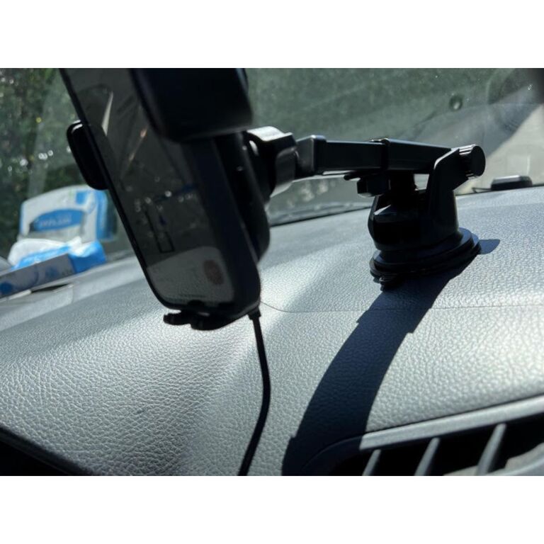 アームが低い位置で固定できるので、ドライバーの見やすい視線上にスマホを固定できる点も魅力の一つ。さらに、ワイヤレス充電機能も備え、スマホの固定と充電の一石二鳥を実現しています。