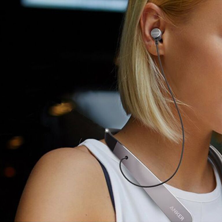 AnkerのオーディオブランドSoundcoreから登場している高性能なネックバンドBluetoothイヤホン。多少大ぶりですが、首から肩にかけての安定感は抜群です。同製品は、『アクティブノイズキャンセリング機能』に対応しているので、周囲の環境音をシャットアウトして音楽に集中できるハイスペックモデル。
