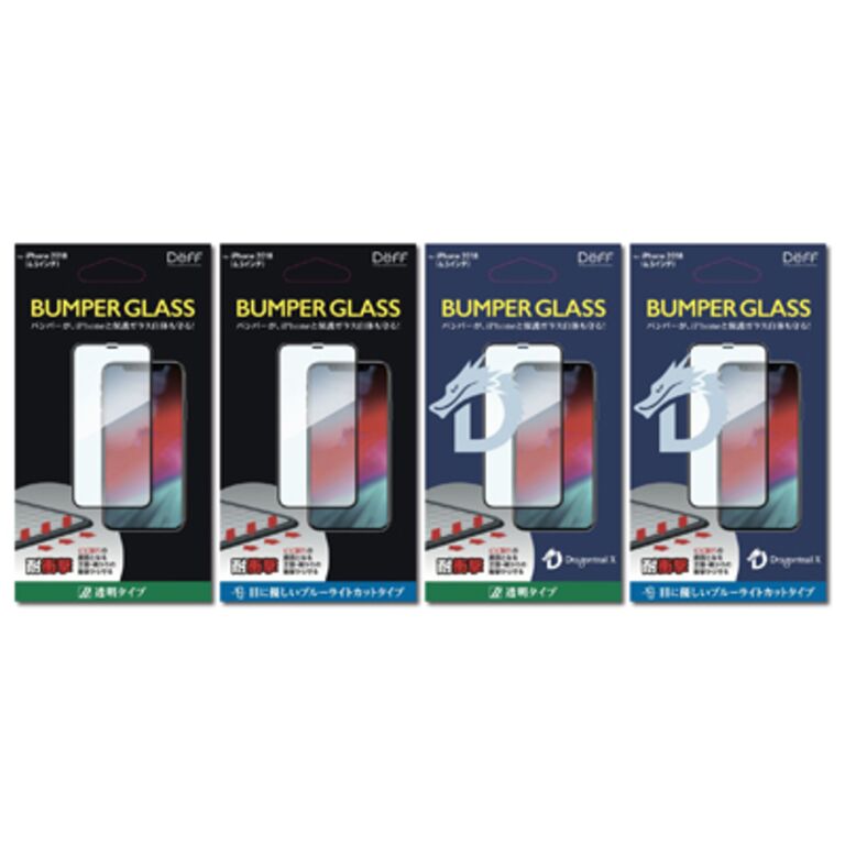 本製品は、ガラスフィルムの周囲をぐるっと取り囲むようにポリカーボネート製のバンパーを一体化させ、スムーズなスワイプ操作と保護力向上を実現しているのが特長。対応機種は、iPhone XS/X、iPhone XS Max、iPhone XRで、それぞれ『透明通常ガラス』、『ブルーライトカット通常ガラス』、『透明Dragontrailガラス』、『ブルーライトカットDragontrailガラス』」の4種類展開となっています。