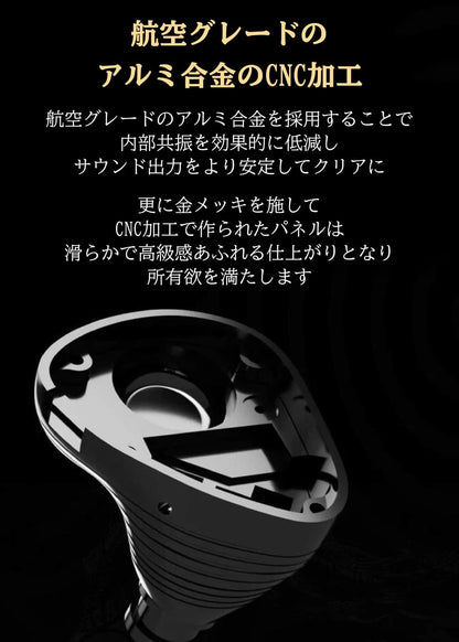 航空グレードのアルミ合金を採用することで内部共振を効果的に低減し、サウンド出力をより安定してクリアにしています。更に金メッキを施してCNC加工で作られたパネルは、滑らかで高級感あふれる仕上がりとなり、所有欲を満たします。