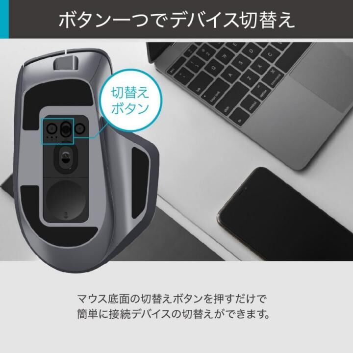 ペアリングし簡単に接続を切り替えることができます。複数のデバイス間でマウス1台で済むためマルチタスクを簡単にこなすことができます。