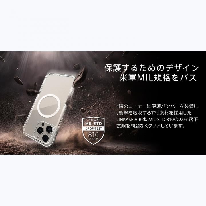 表面硬度9H、耐衝撃性2倍のゴリラガラスは、iPhone 16シリーズを保護するのに最適な透明な保護ケースです。 MagSafe用の強力なマグネットを内蔵したLINKASE AIRは、これまで以上に便利にお使いいただけます。 【保護するためのデザイン:米軍MIL規格をパス】