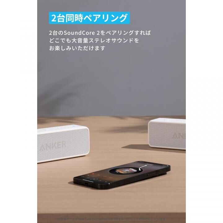同梱物:パッケージ内容:Anker SoundCore 2、USB-C & USB-A ケーブル、取扱説明書、カスタマーサポート
